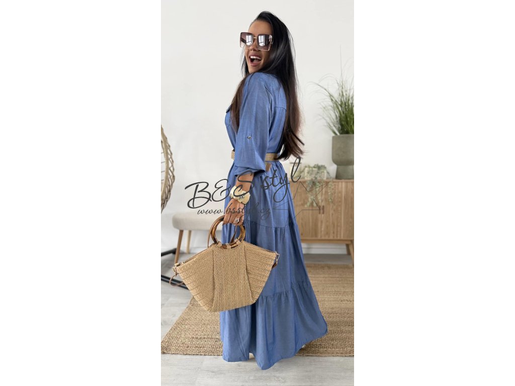 Maxi šaty z odlehčeného denimu