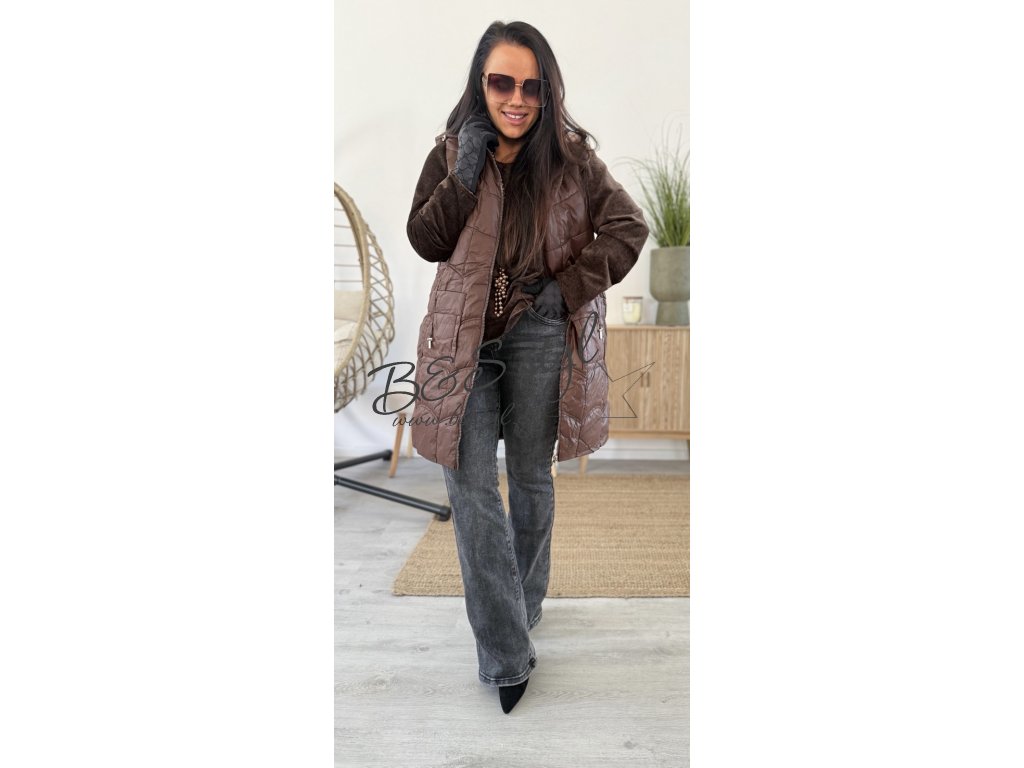 Velmi vhodná vesta na podzimní procházky. Má rovný střih, který se dá v pase pomocí šňůrek upravit na ženské křivky.