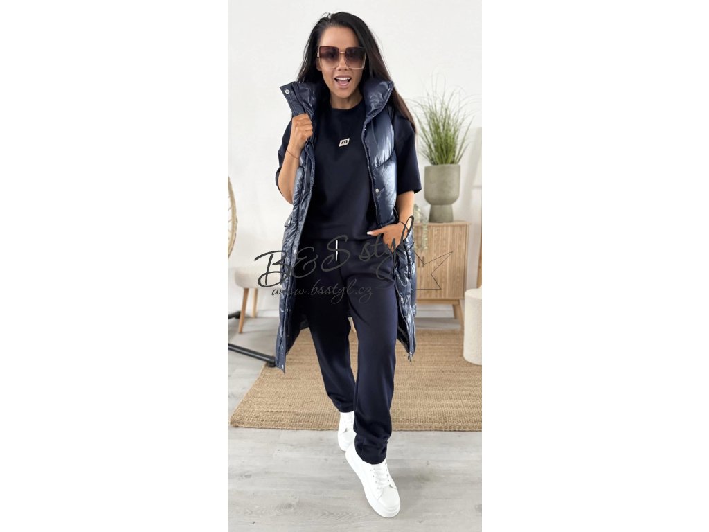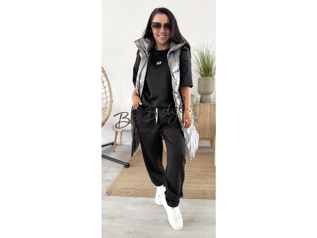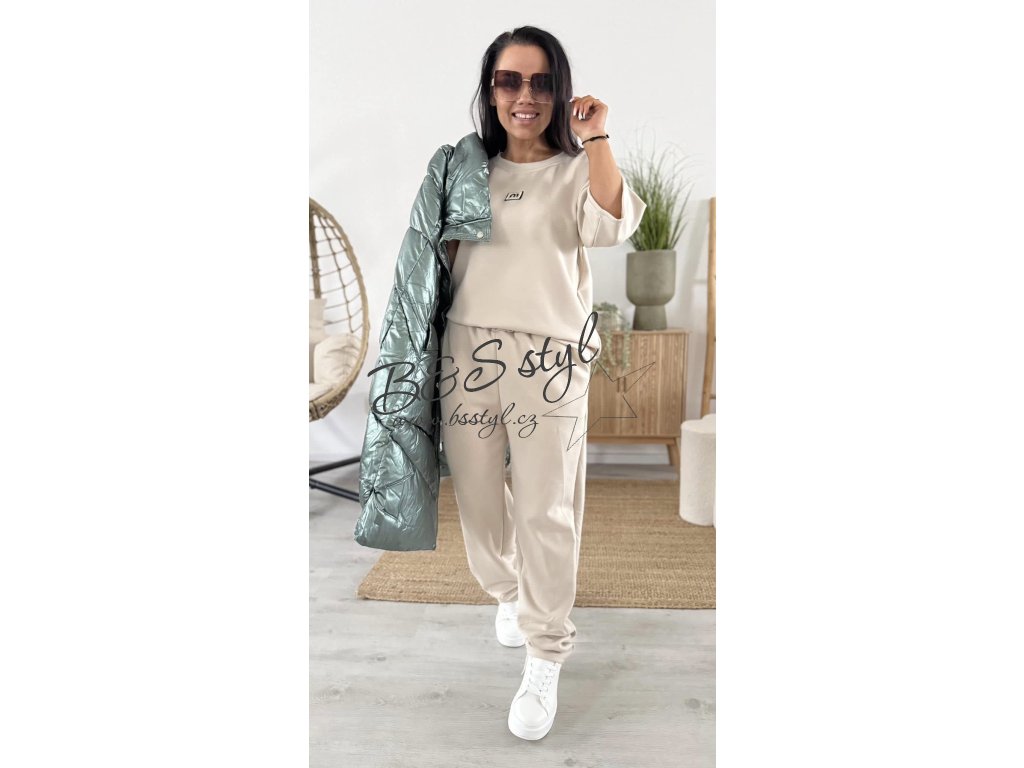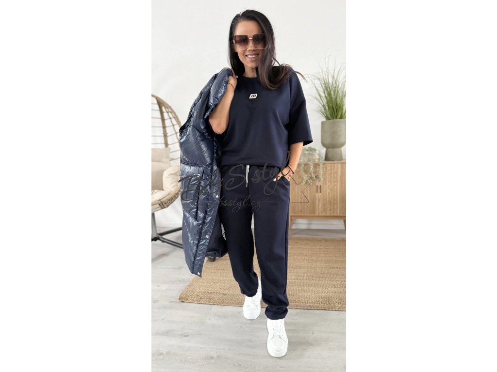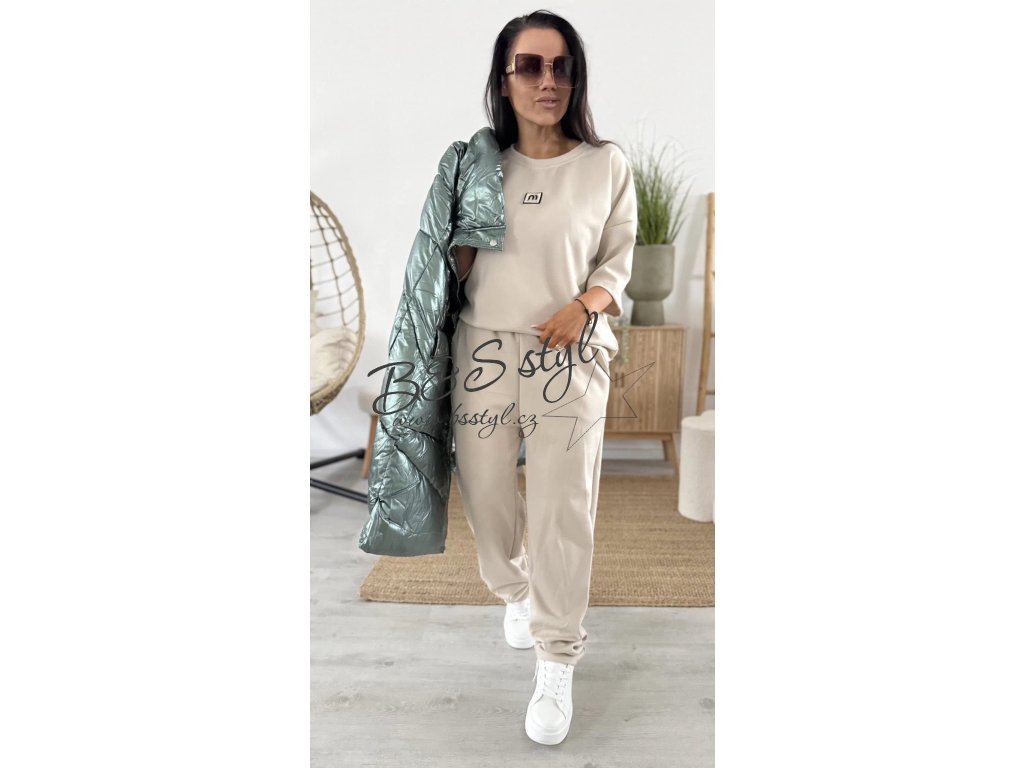 mikina s kulatým pružným výstřihem a jemným znáčkem na přední straně