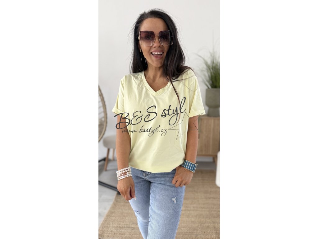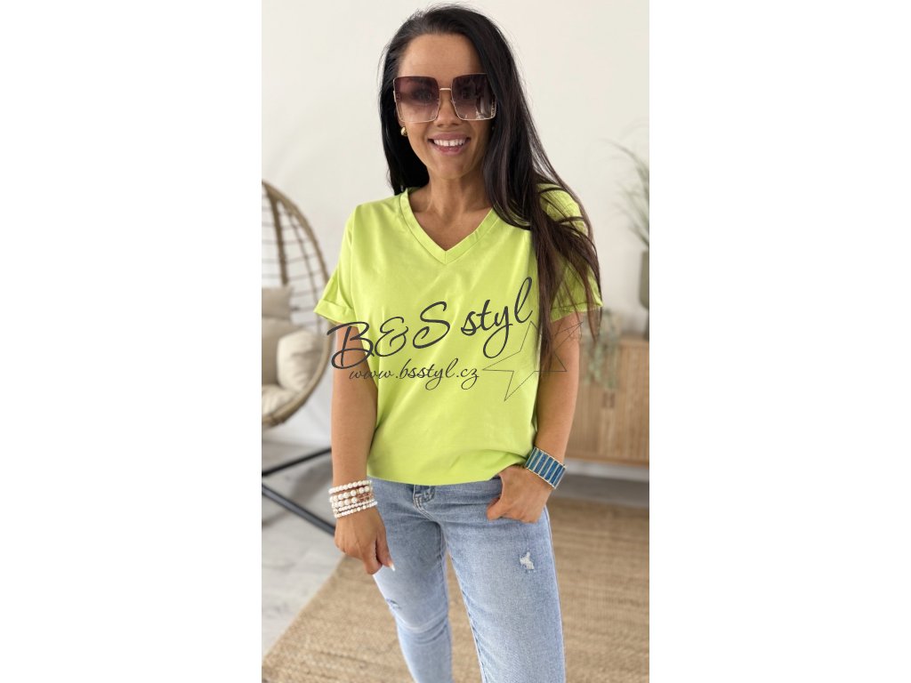 Příjemná bavlna,tričko má pěkný výstřih do véčka,takže opticky prodlužuje krk.