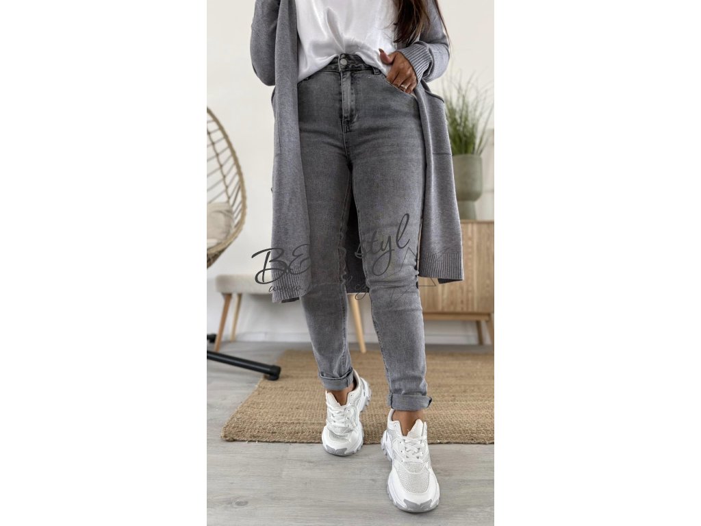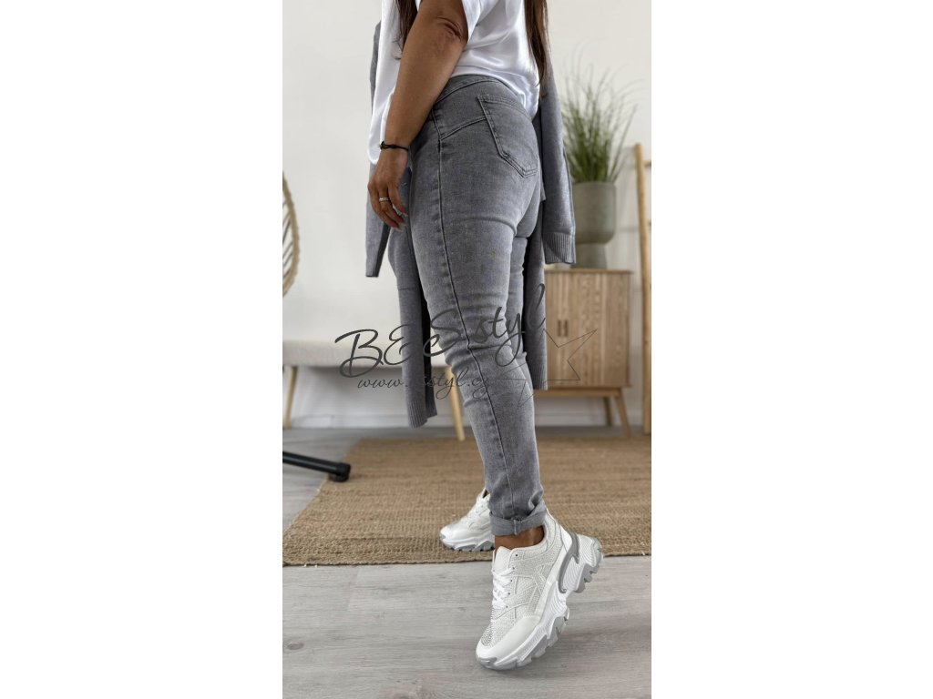 Pružné máslové Slim jeans v trendy podziimní ICE ŠEDÉ BARVĚ