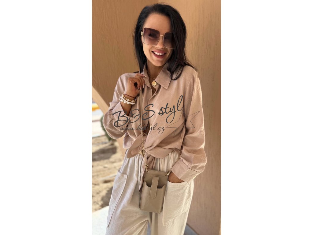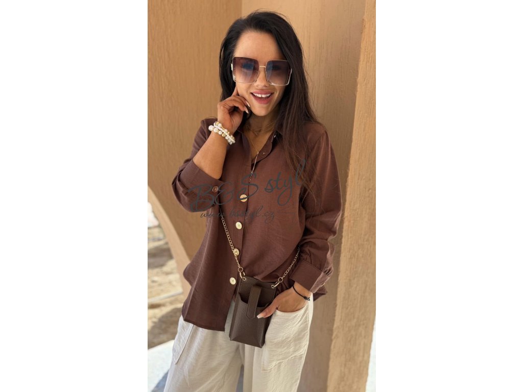 detaily v podobě zlatých knoflíčků dodávají košili šmrnc