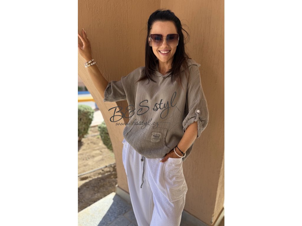 Krásná halenka, mušelin oceňuji horku. Příjemný na nošení.
