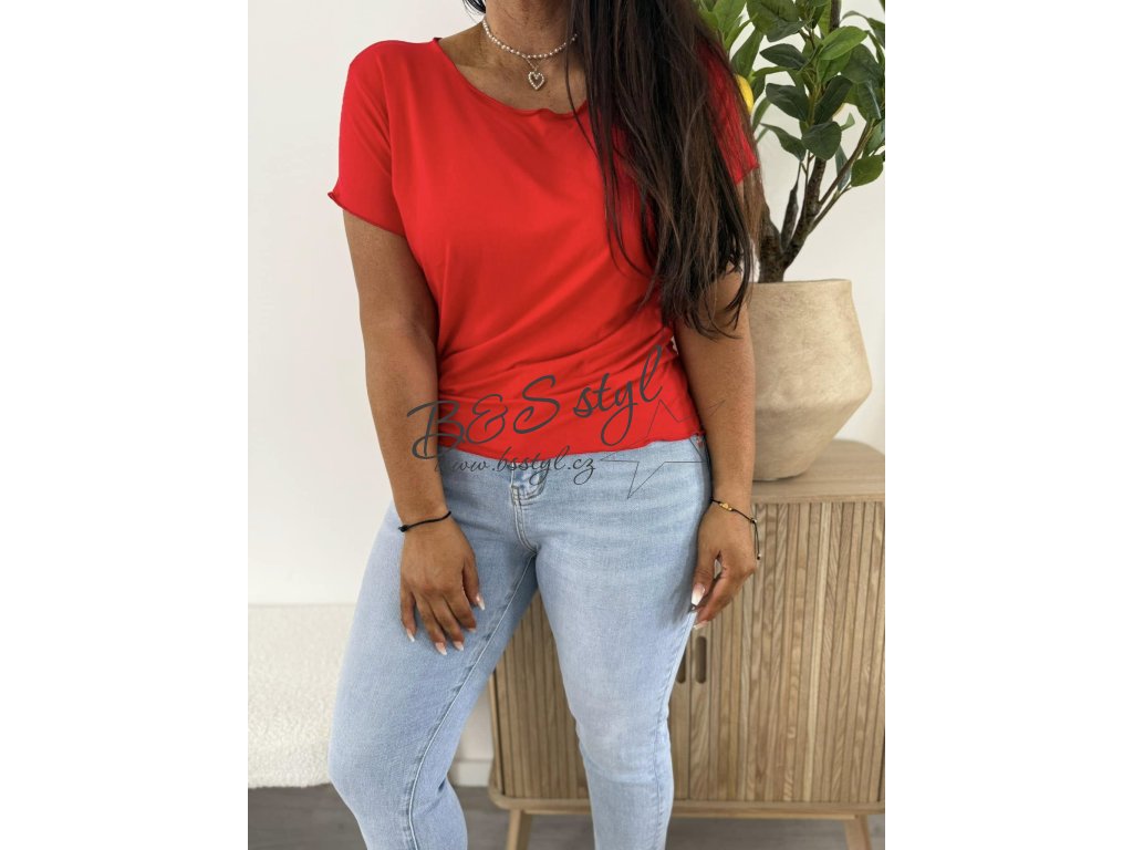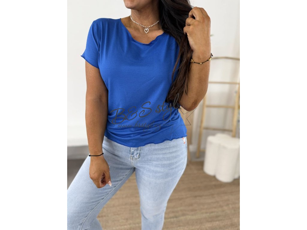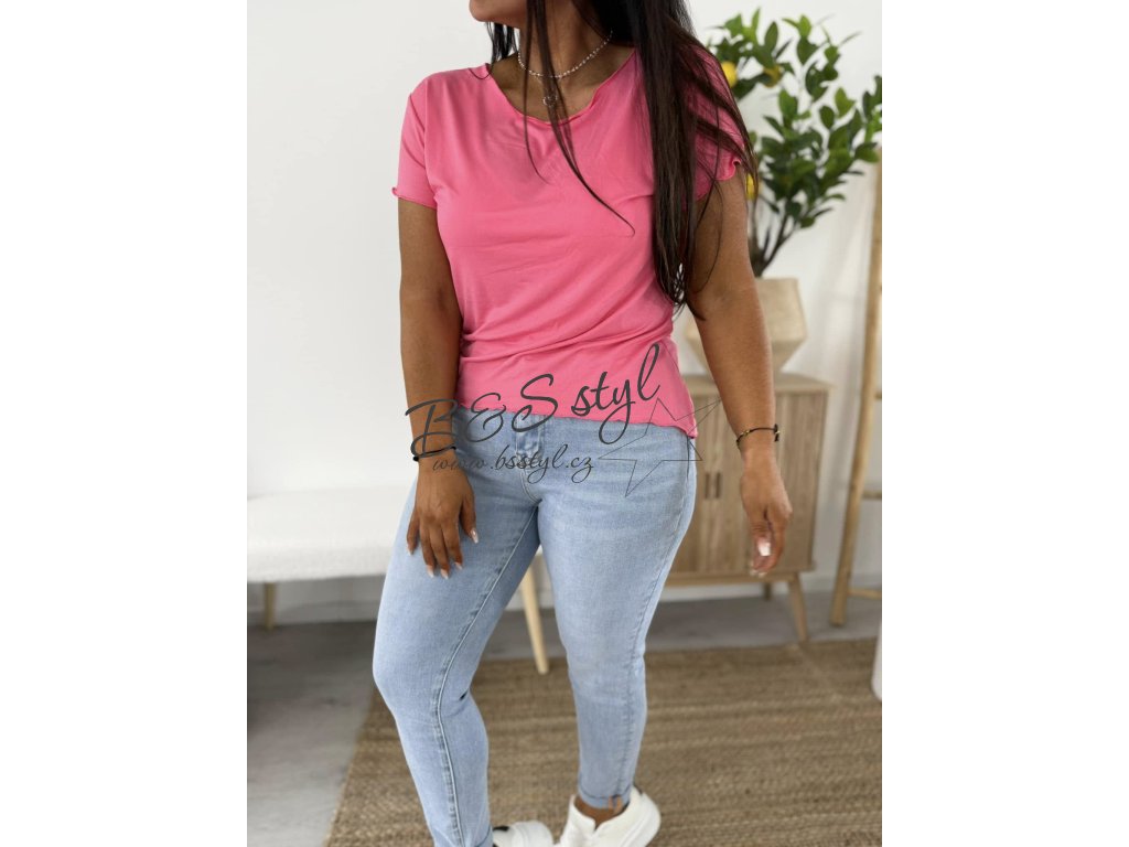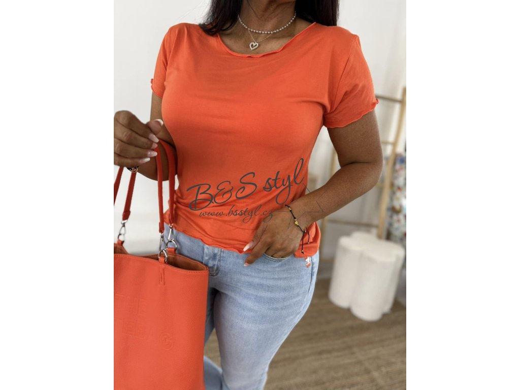 lodičkový výstřih s vlnitým lemem, který je i na rukávu