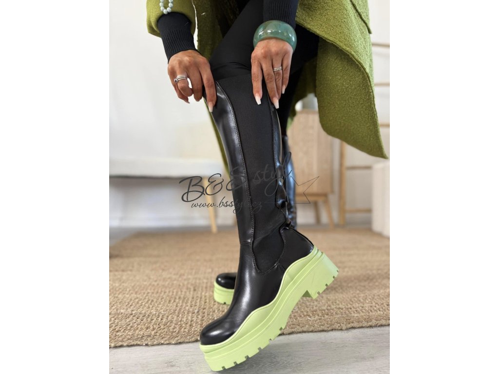 z vnější strany guma, která se přizpůsobí každému lýtku