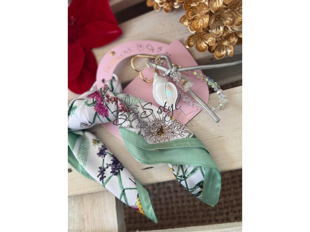 Dárkový set - hedvábný šátek + přívěsek na kabelku/ klíče